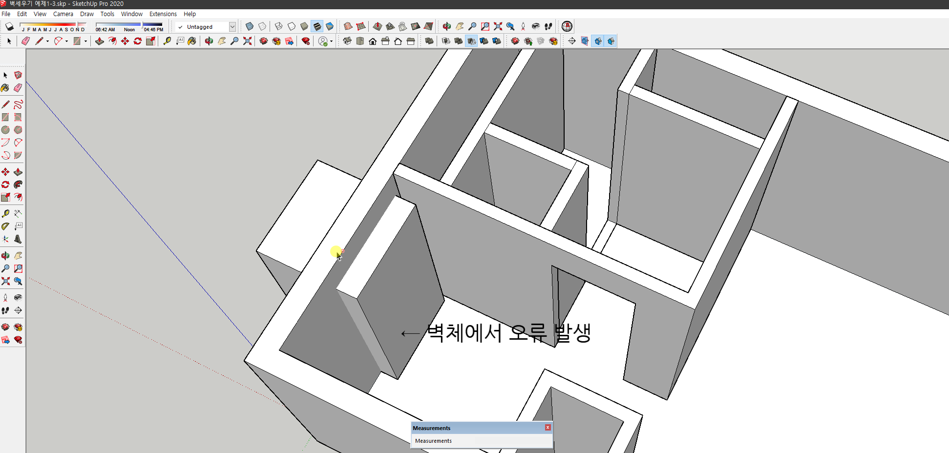 6. 오류가 생긴다면 벽체를 클릭하여 solid inspector 도구를 활용하여 오류 수정