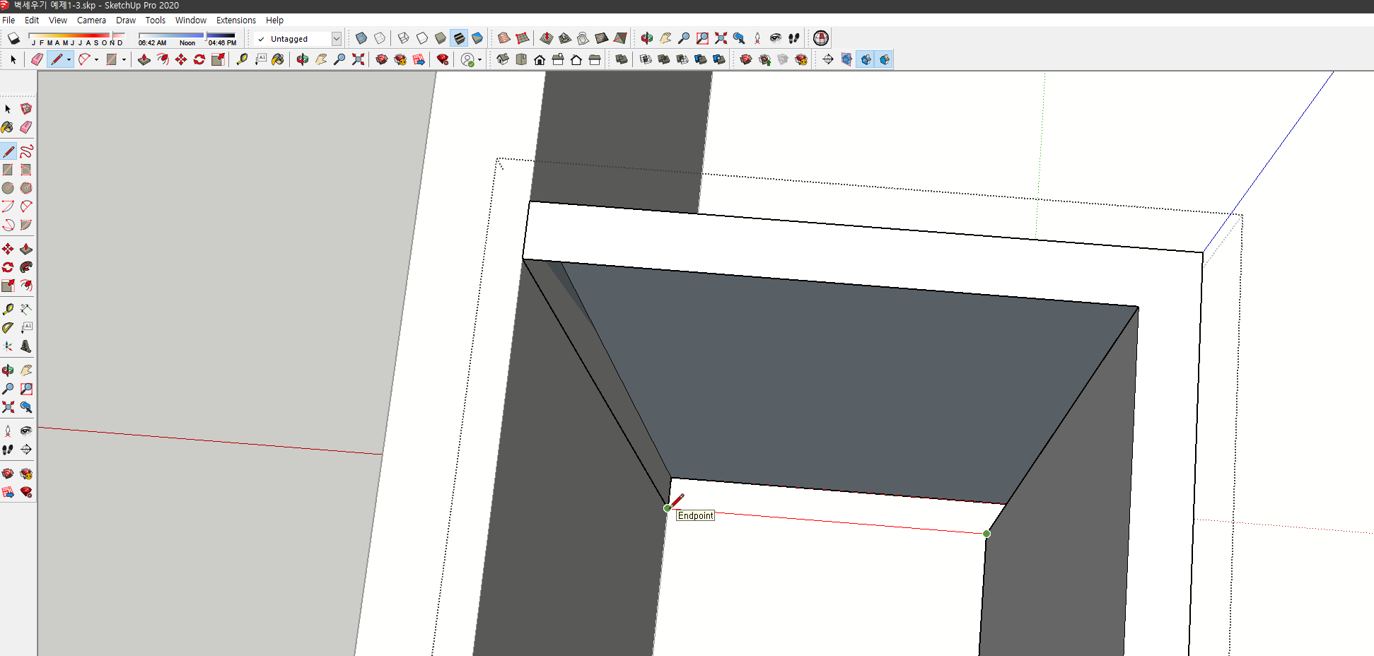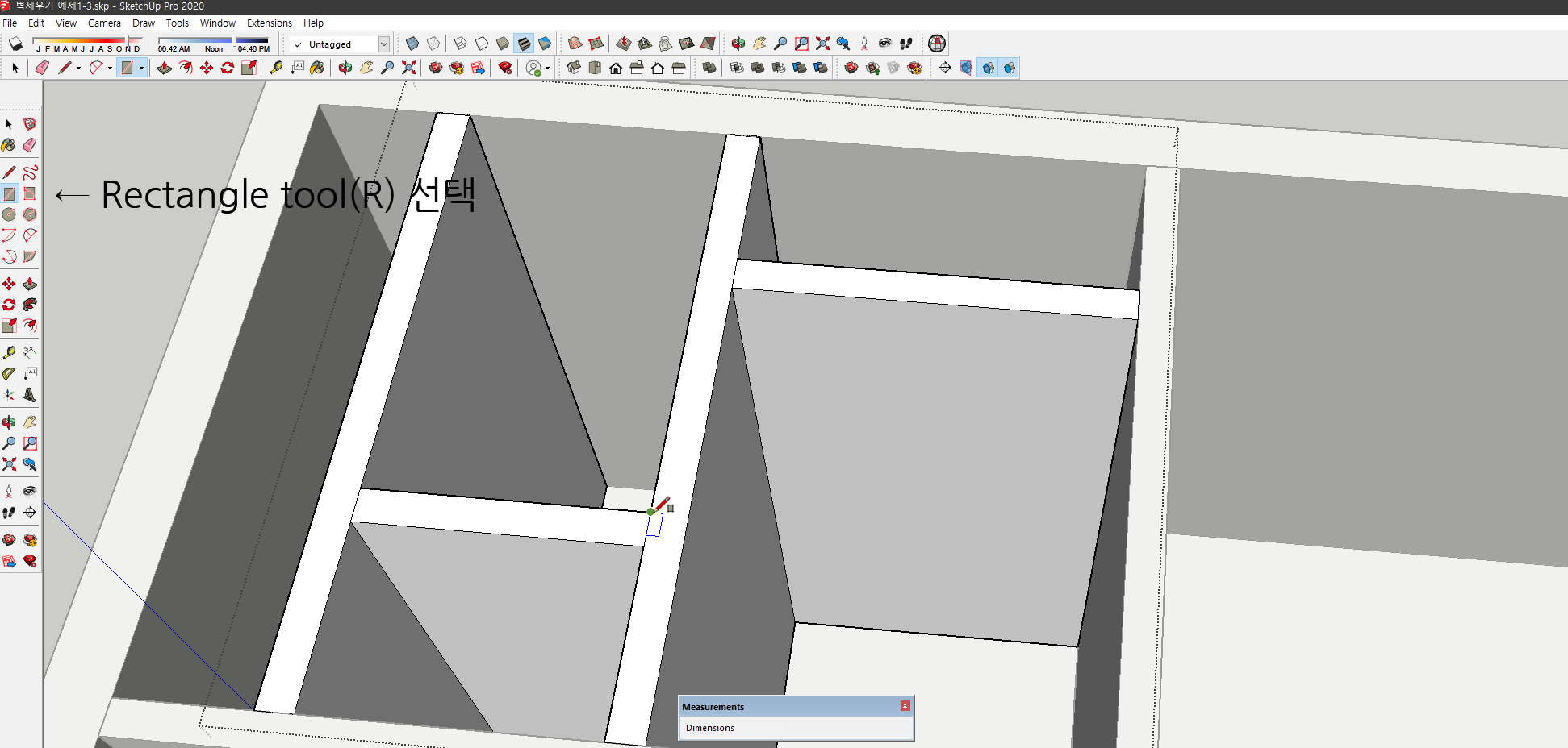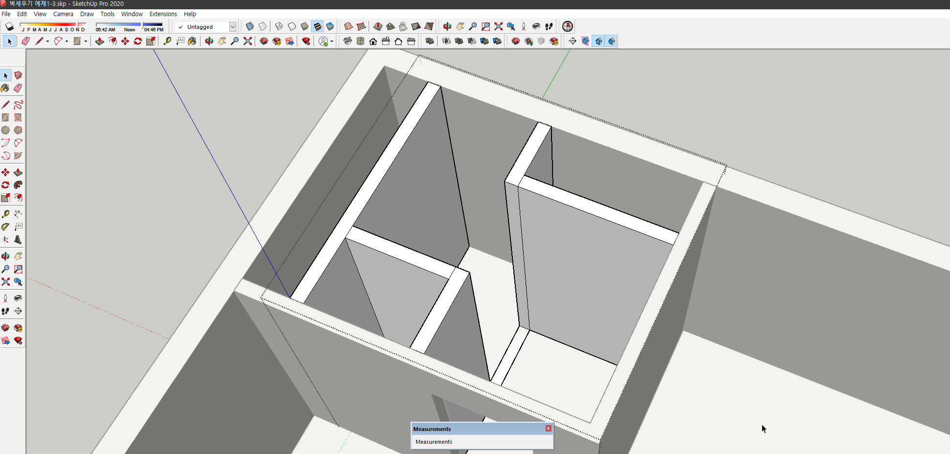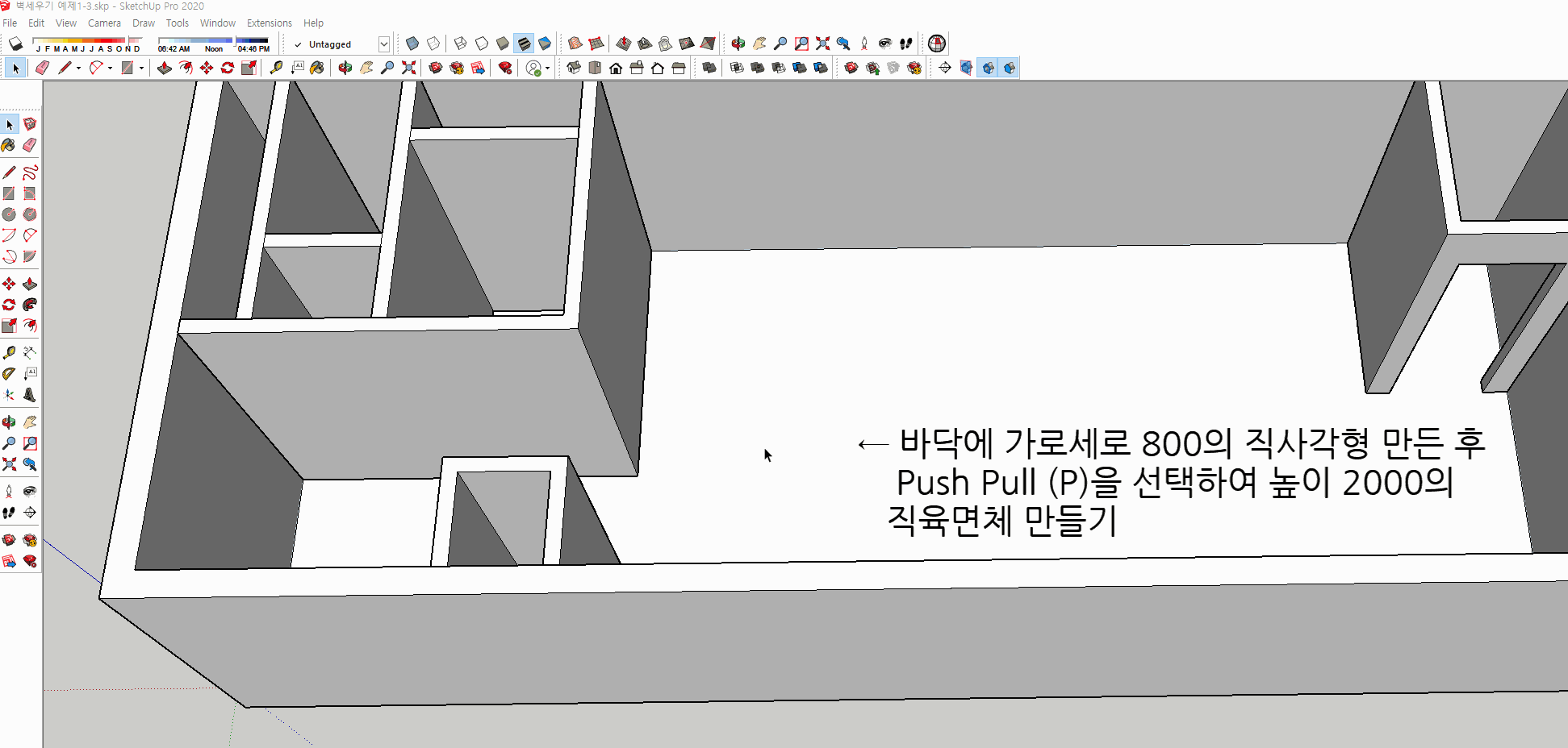 스케치업 독학 - 벽체 세우기 예제 1-2 (Line & Offset & Push Pull)