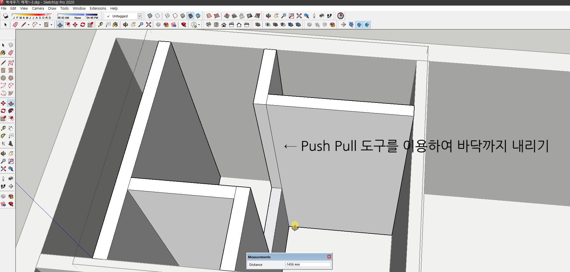 4. Push Pull 도구를 이용하여 바닥까지 내리기