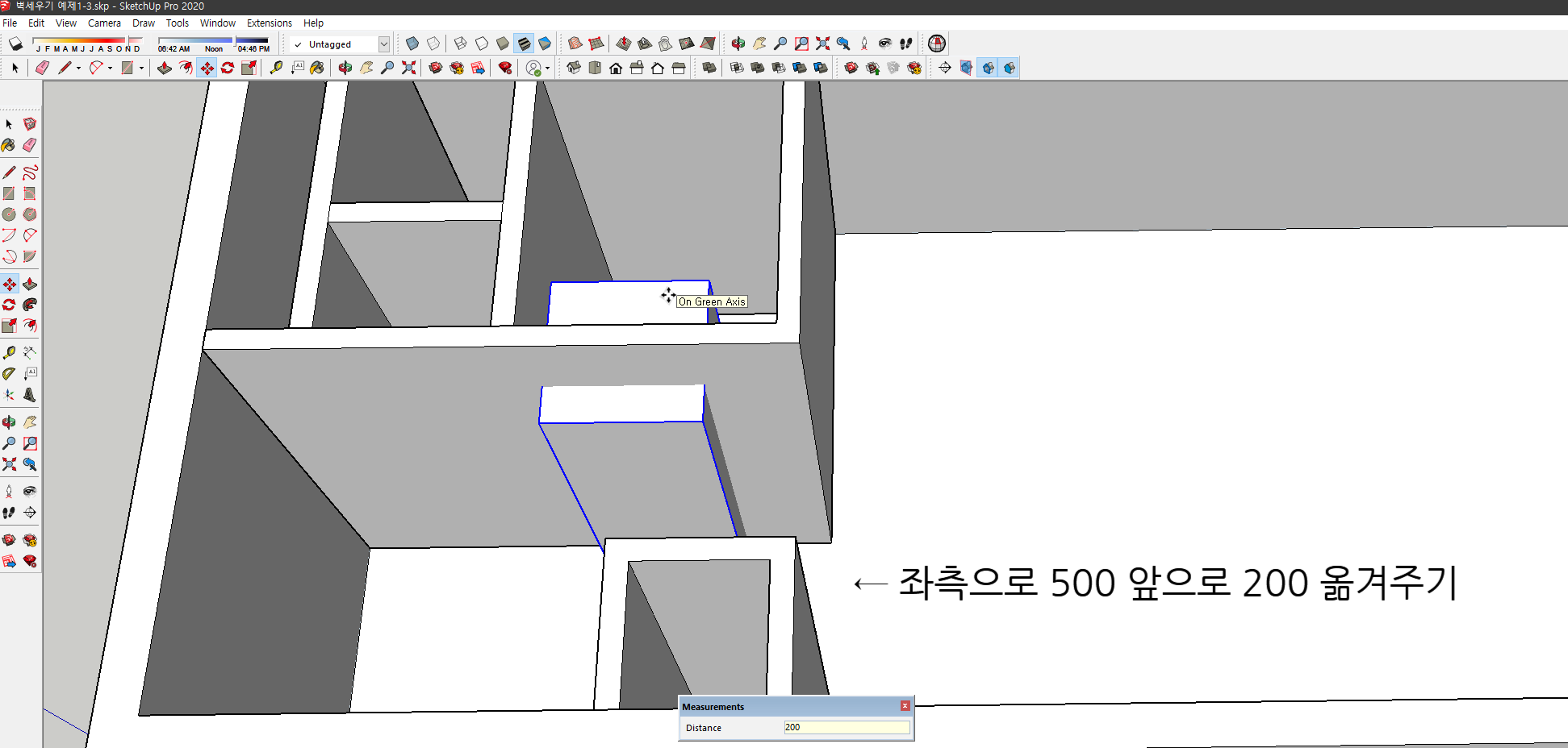5. 앞으로 200 좌측으로 500 옮겨주기