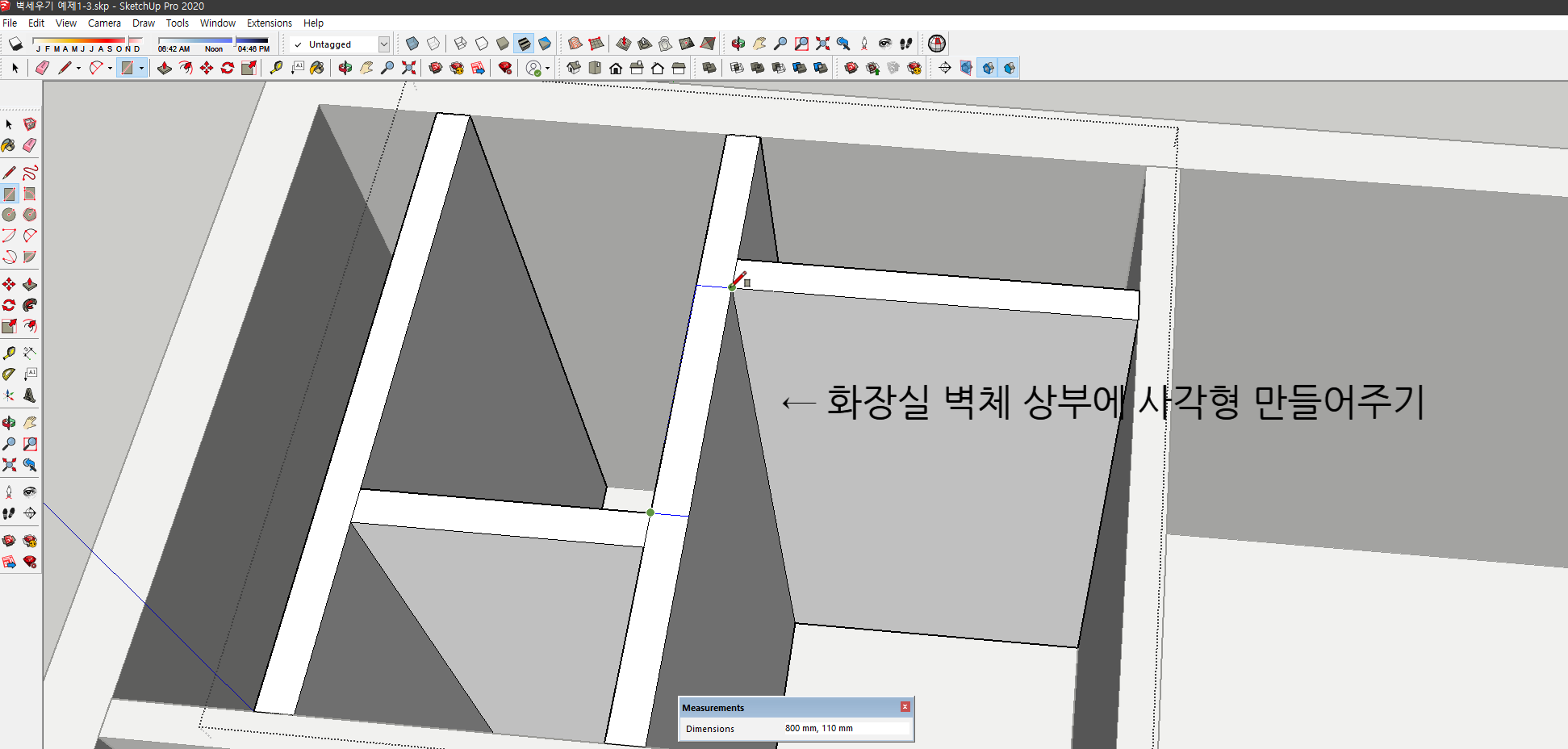 3. 화장실 벽체 상부에 사각형 만들어주기