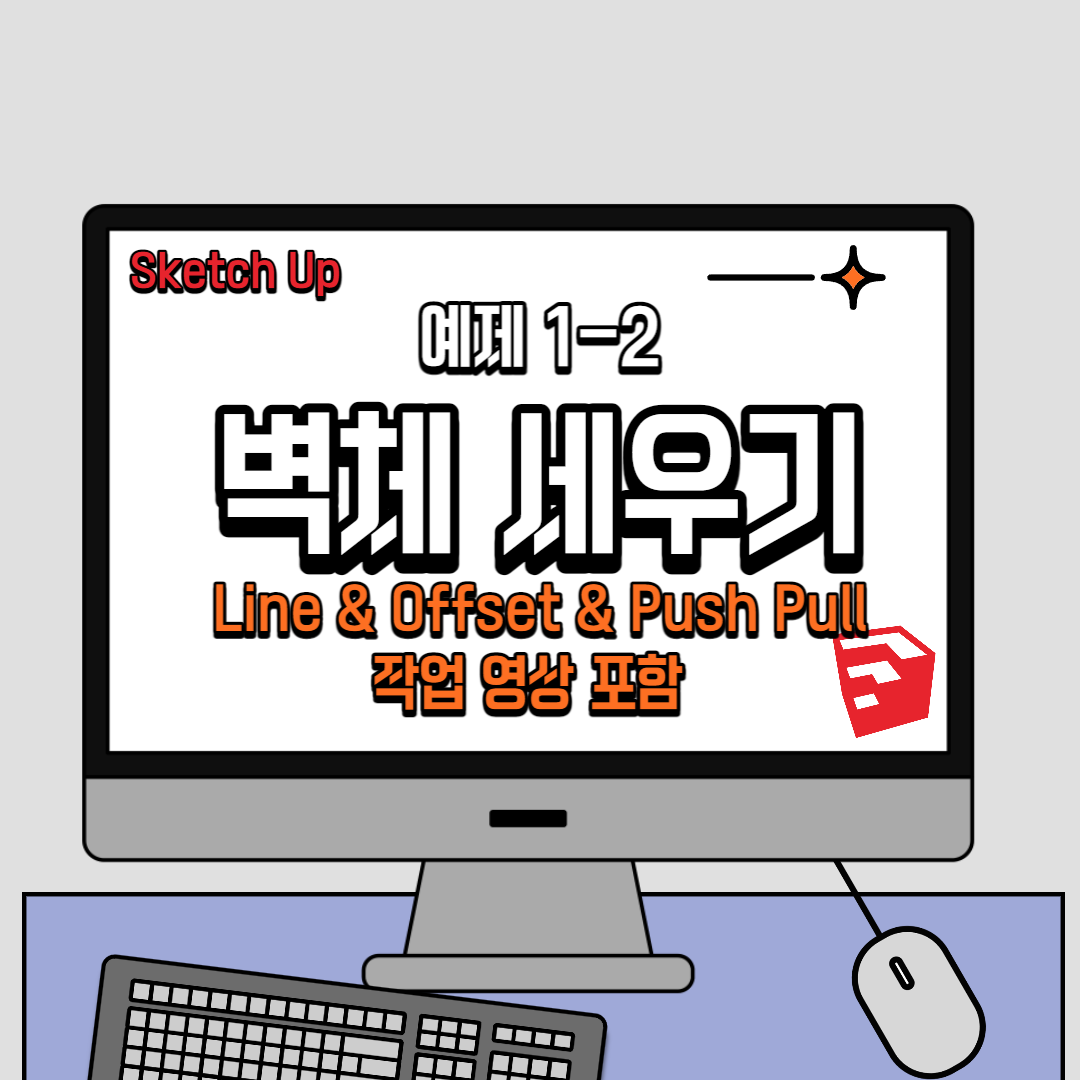 스케치업 독학 - 벽체 세우기 예제 1-1 (Rectangle & Offset & Push Pull)